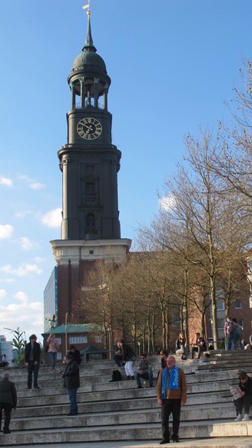 | Michaeliskirche in Hamburg | Hafen von einem Restaurant aus gesehen |