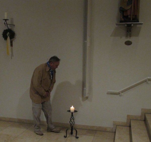 | Der älteste Teilnehmer, Georg, löscht die Pilgerkerze |