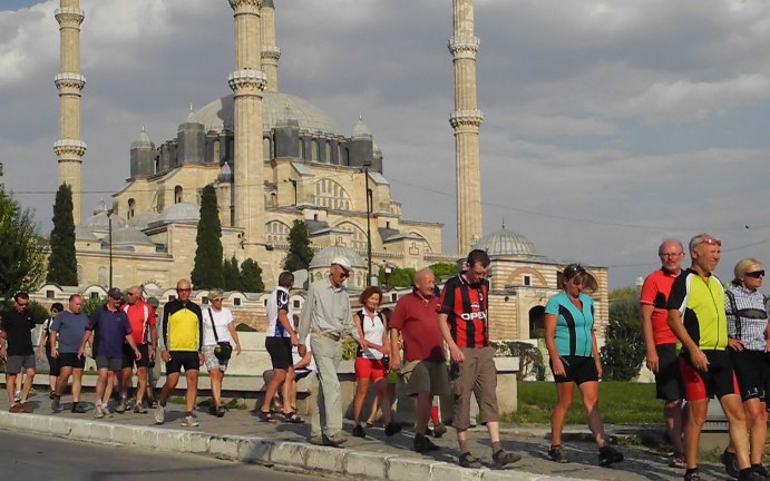 | 8. Radtag: Edirne: in der größten Einkuppelmoschee Europas | 8. Radtag: Edirne: vor der größten Einkuppelmoschee Europas |
