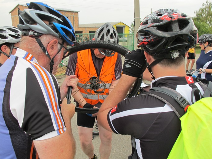 | 16-stündige Anfahrt wurde mit Schafkopf ausgefüllt | Bei 10 Platten am 1. Radtag gab es viel zu tun |