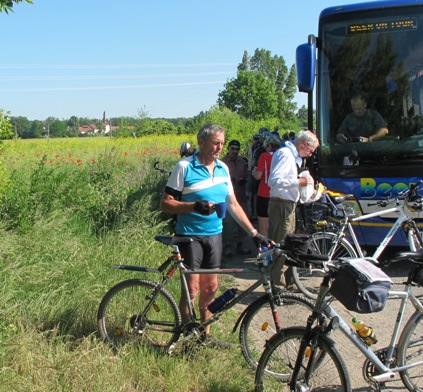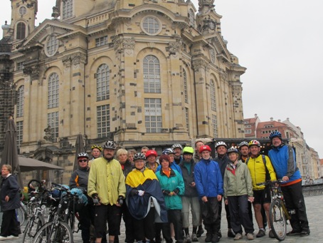 Radfahrerkirche in Wehlen; von manchen Radpilgern, die 2010 zum ökumenischen Kirchentag nach München gepilgert sind, hägen hier Fotos | Am Ziel: vor der Frauenkirche in Dresden |
