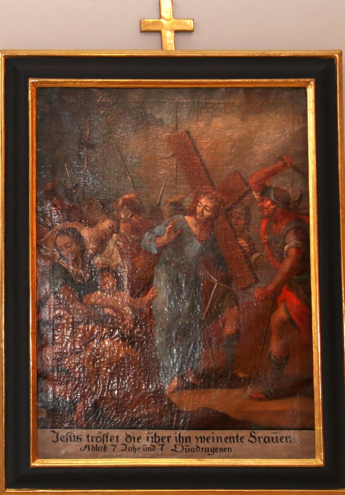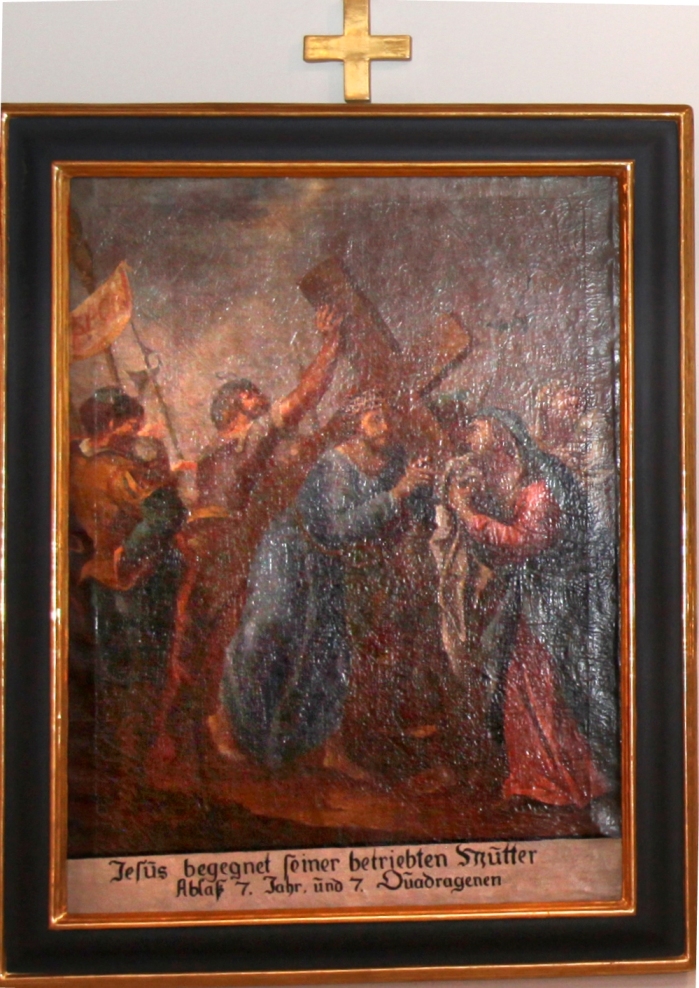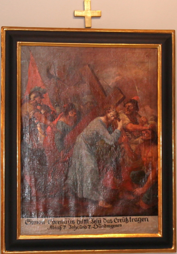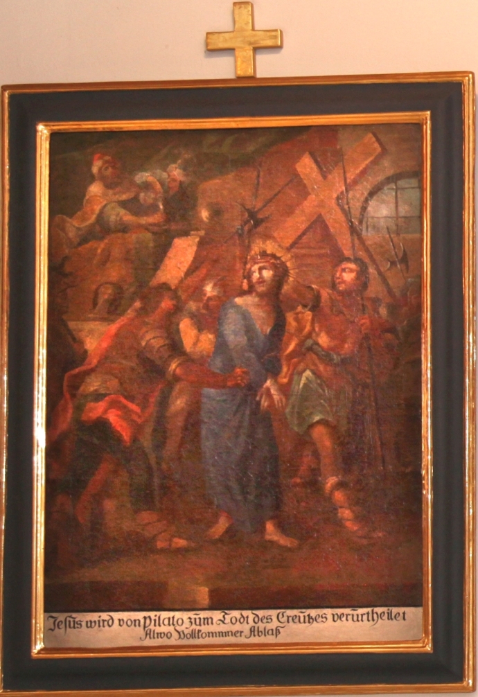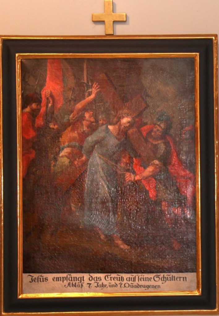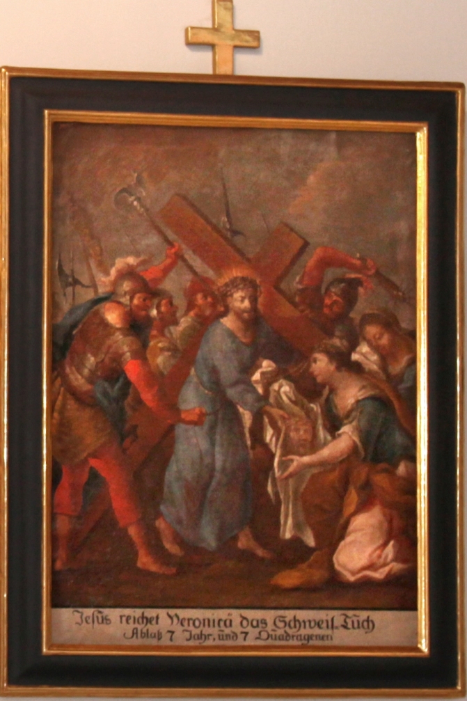 Zur Ausstattung einer jeden katholischen Kirche gehört ein Kreuzweg zum pietätvollen Abschreiten und Betrachten des Leidensweges Jesu in (heute) 14 Stationen. Der Inhalt der einzelnen Stationen ist durch die Evangelien verbürgt oder von ihnen abgeleitet. Nur die 6. Station (Veronika) ist legendär.